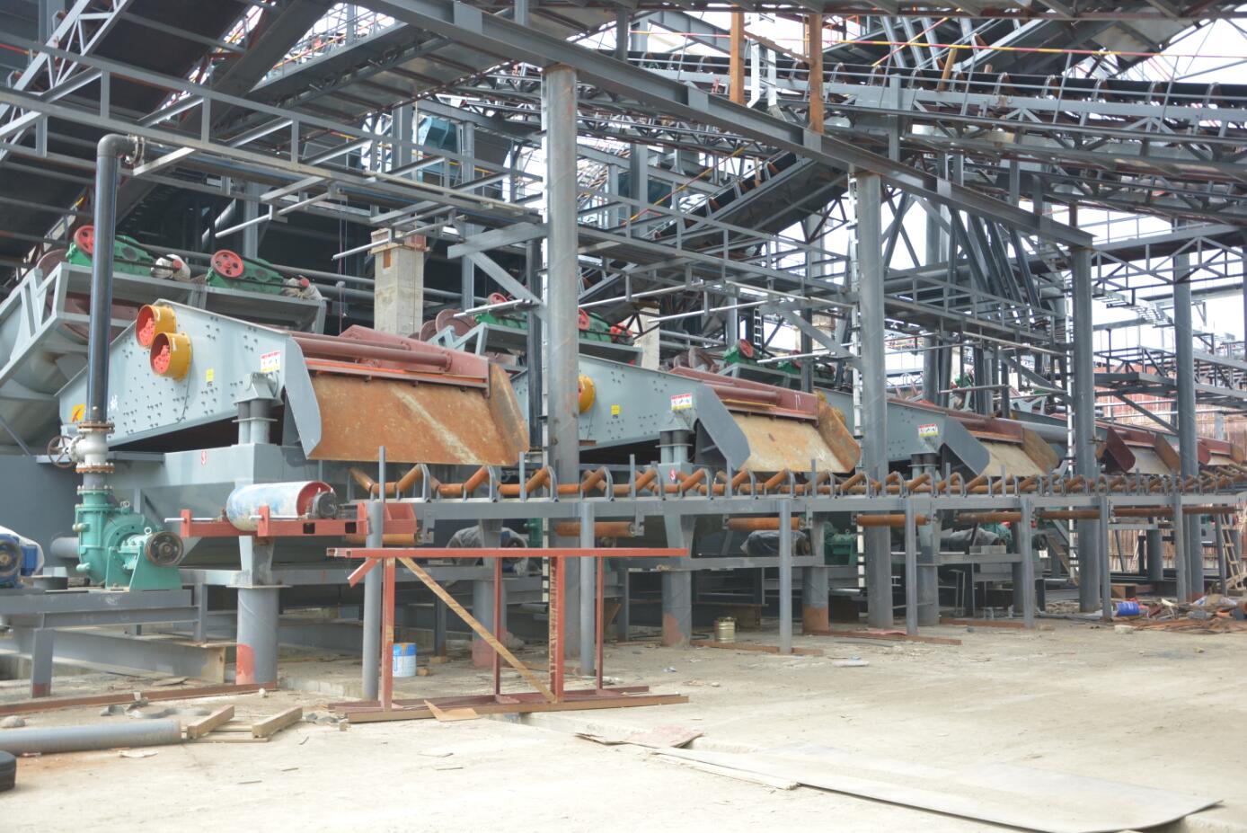 制砂設(shè)備即把大塊物料粉碎,水洗,整形而制成合格工程用沙的機械設(shè)備。常用于制砂設(shè)備的設(shè)備有:振動給料機,鄂破,反擊破,圓錐破,錘破,洗沙機,振動篩,滾筒篩等。